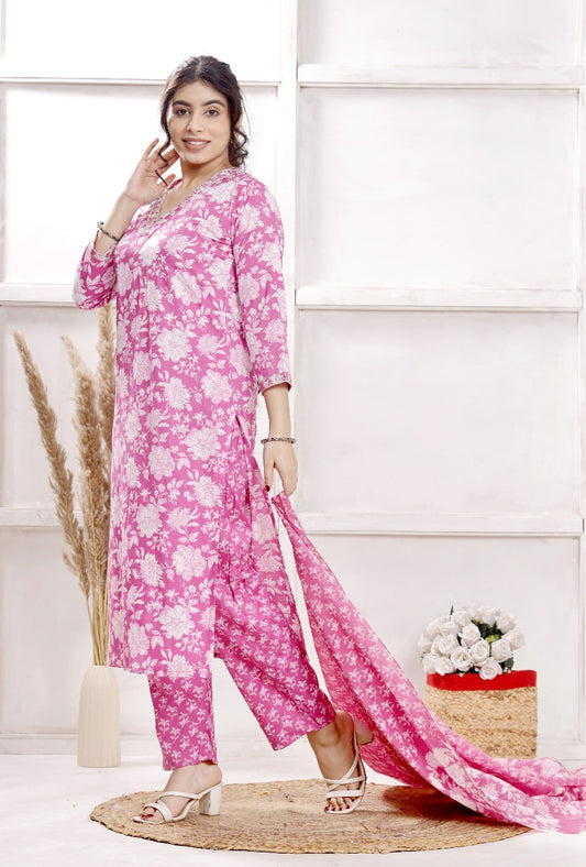 tep into effortless style with this beautifully crafted ethnic kurta set. Featuring intricate all-over prints...