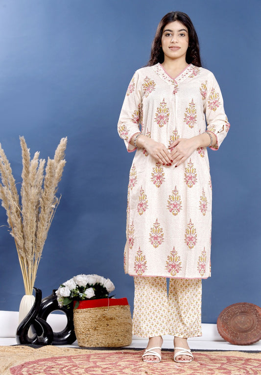 tep into effortless style with this beautifully crafted ethnic kurta set. Featuring intricate all-over prints...